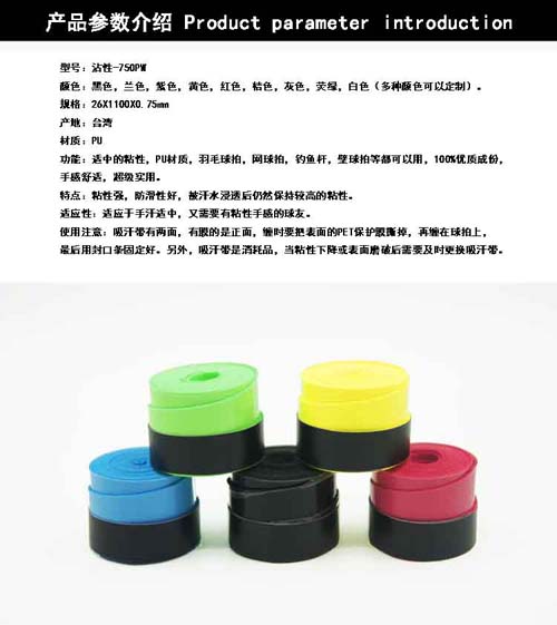 功能:適中的粘性,PU材質,羽毛球拍,網球拍,釣魚桿,壁球拍等都可以用,100%優質成份,手感舒適,超級實用。