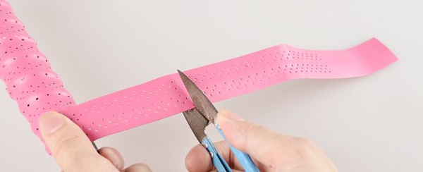 一般吸汗帶寬度25mm每次壓1/3合適,都可以完全纏繞到拍柄上端,最后準(zhǔn)備好附帶的膠帶,撕開最開始留下的膠帶,把吸汗帶末端用膠帶纏繞至不會(huì)散開。