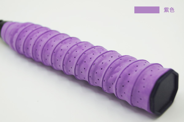 第二個款式:一般來說,柄皮款式較少,而且纏繞拍柄的一面有較強的黏性,款式普遍較多,手感多半呈黏性,按工藝可分舒適的吸汗帶,阻尼感較強、握持最穩定的龍骨吸汗帶,以及阻尼感良好,握持穩定舒適的吸汗帶和毛巾面吸汗帶。當然,吸汗帶之所以稱之為吸汗帶,與其吸汗能力密不可分。好的吸汗帶多由吸附性和傳導性良好的聚氨酯材料制作,并有內織紋結構排濕。