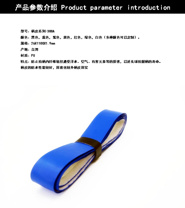 特點:超軟手柄皮,表面附軟膜, 1.80mm的厚度,有特好的手感和減震功能,吸水性極佳